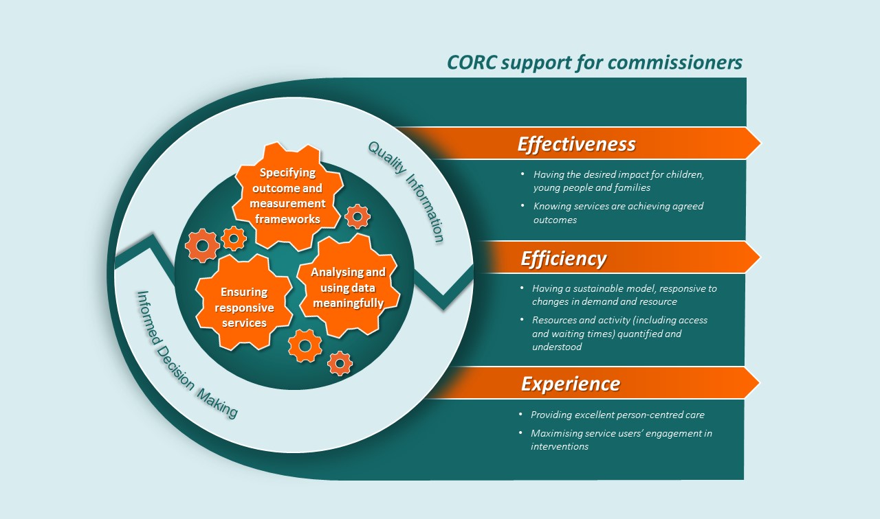 Perhaps it is…The first and foremost challenge on this road to excellent outcomes is for local areas / commissioning footprints to understand where they are currently: what is in place, what is well embedded and works, what is missing and what needs to be improved? To demystify what the key elements and methodologies are for a healthy, outcome-focused system, CORC have developed a model to demonstrate best practice and help guide the way. This holistic model does not just focus on how to measure and how to get more data; it helps to think through: